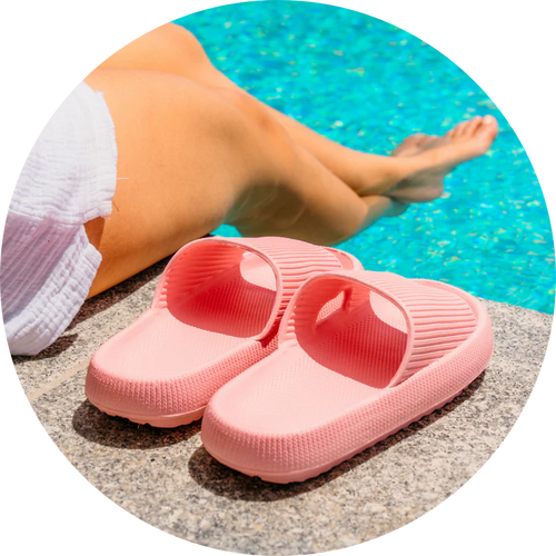 Yes, our slides are fully waterproof and quick-drying—perfect for indoors, outdoors, or post-shower/swim. The non-slip sole of Recovery Slides ensures stability and safety while walking.